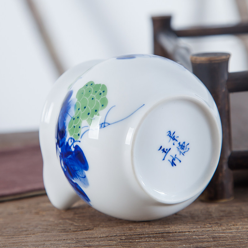 Jingdezhen Ceramics Fair Cup Green Flower porcelain sub-tea Hand-painted Thin Tire Cup Uniform Cup Handmade Tea Dao Tea Sea