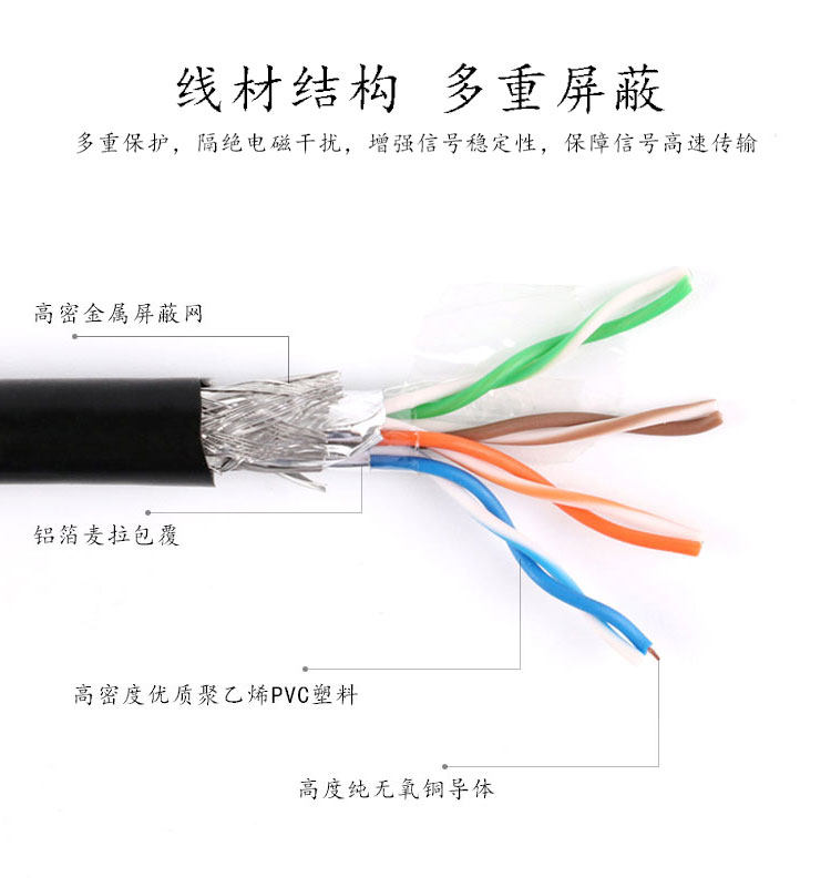 Ultra-five-type network cable pure copper double screen concealed metal head extremely fast computer network route network route broadband line