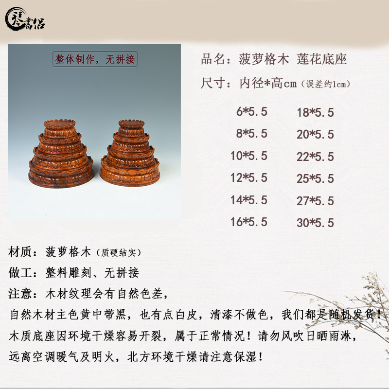 Violin lover Guanyin Lotus Lotus Base Buddha Table Round Solid wood Bodhisattva Buddha Statue Pedestal of Buddha Base Wood