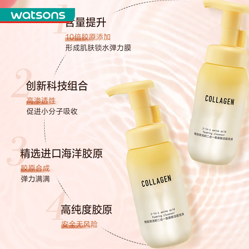 Watsons Collagen Amino Acid Cleansing Foam 200ml Facial Cleanser Female Gentle Clean Pore Skin Refreshing