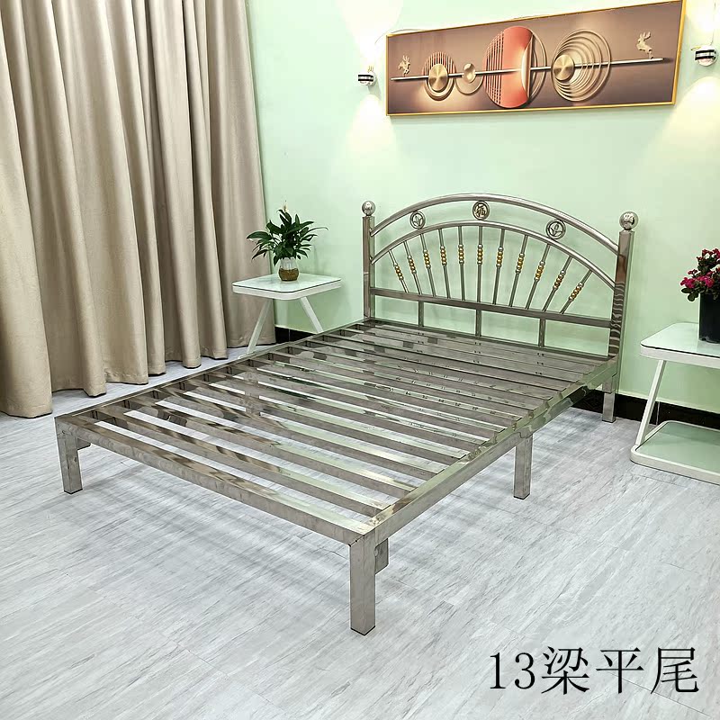 Stainless steel bed 1 5 European style modern double bed 1 8 m apartment rental room thickened 304 stainless steel bed frame