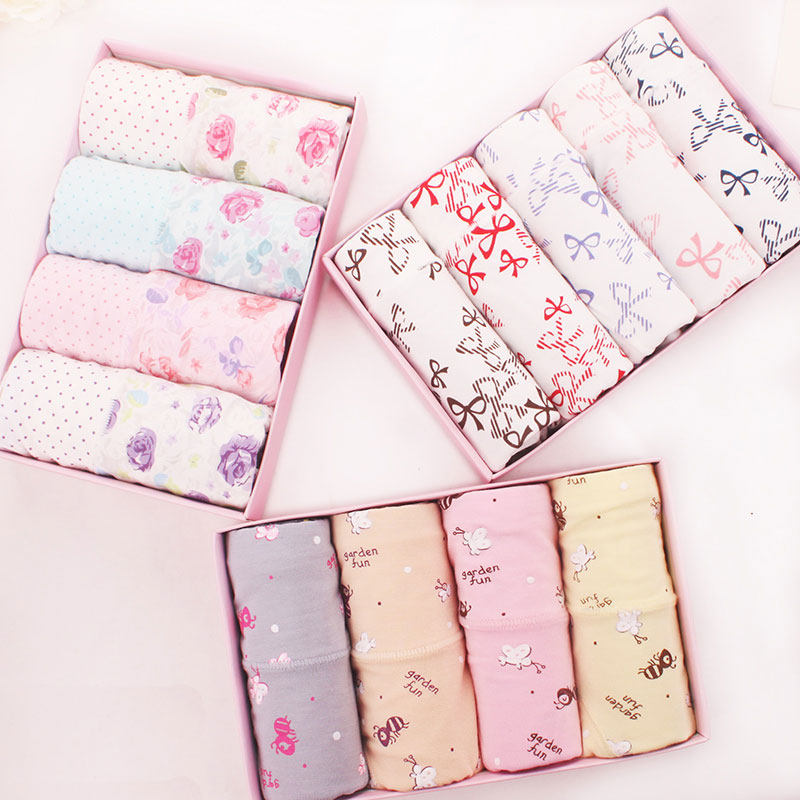 Modal mid-low waist women's underwear four colorful cute wide waist briefs gift box multi-pack 4 pack