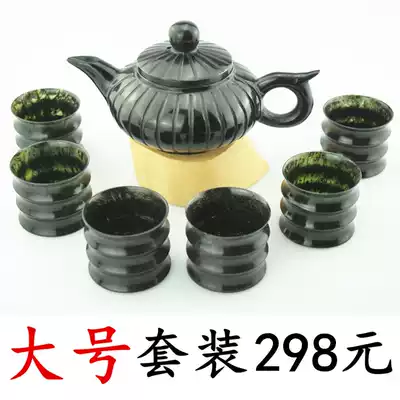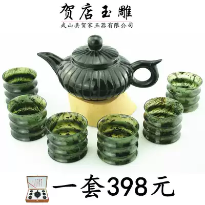 Hedian jade carving Jiuquan Luminous Cup set tea set Jade goblet Cup Cup Tea Cup Qilian Jade Mandarin duck