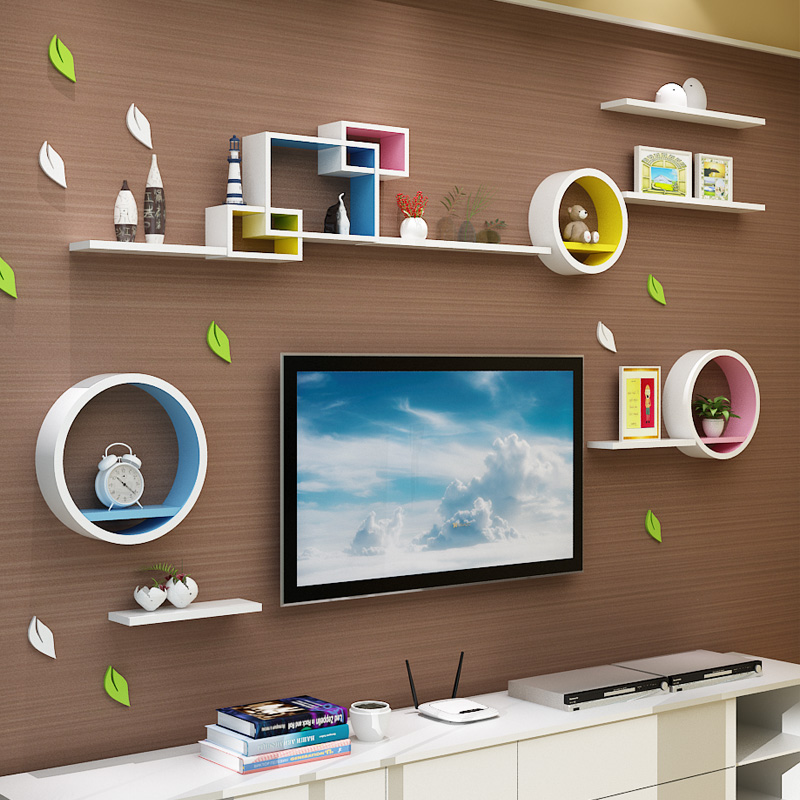 TV wall shelf Creative lattice wall hanging wall Living room bedroom film and television TV background wall decoration rack