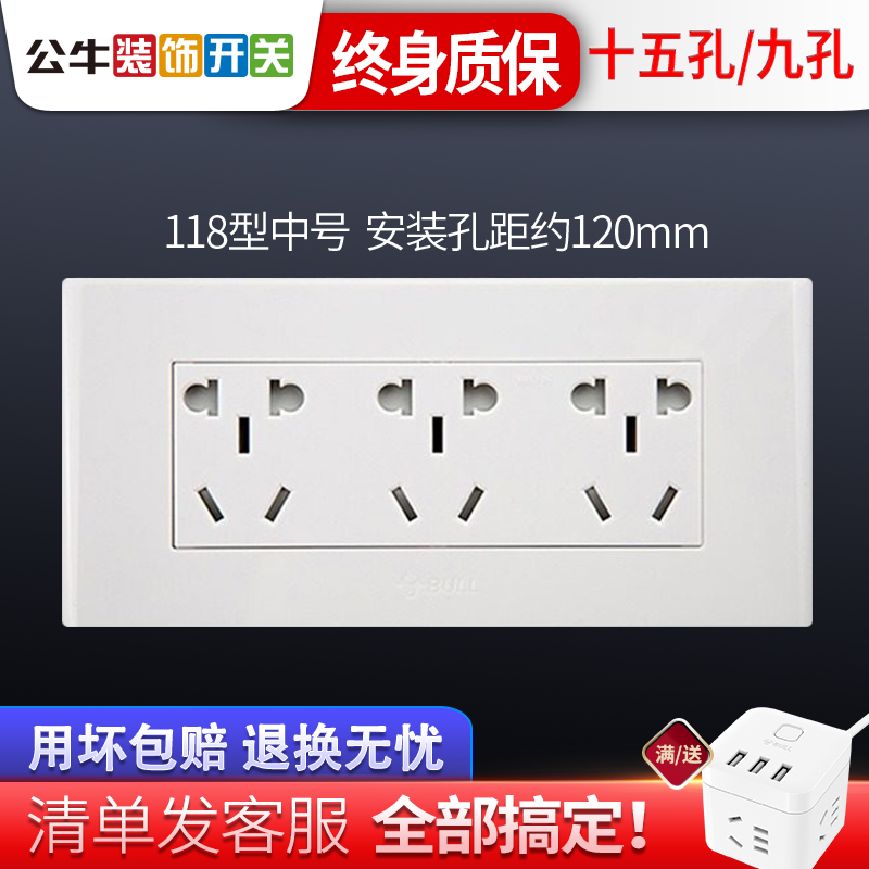 Bull 118 switch socket panel 15-hole power outlet 9-hole nine-hole wall concealed 15-hole socket