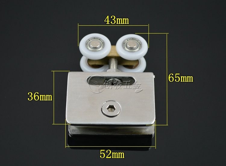 Thickened stainless steel hanging clip glass door small hanging wheel Full copper rod bathroom sliding door hanging wheel Shower room glass door pulley