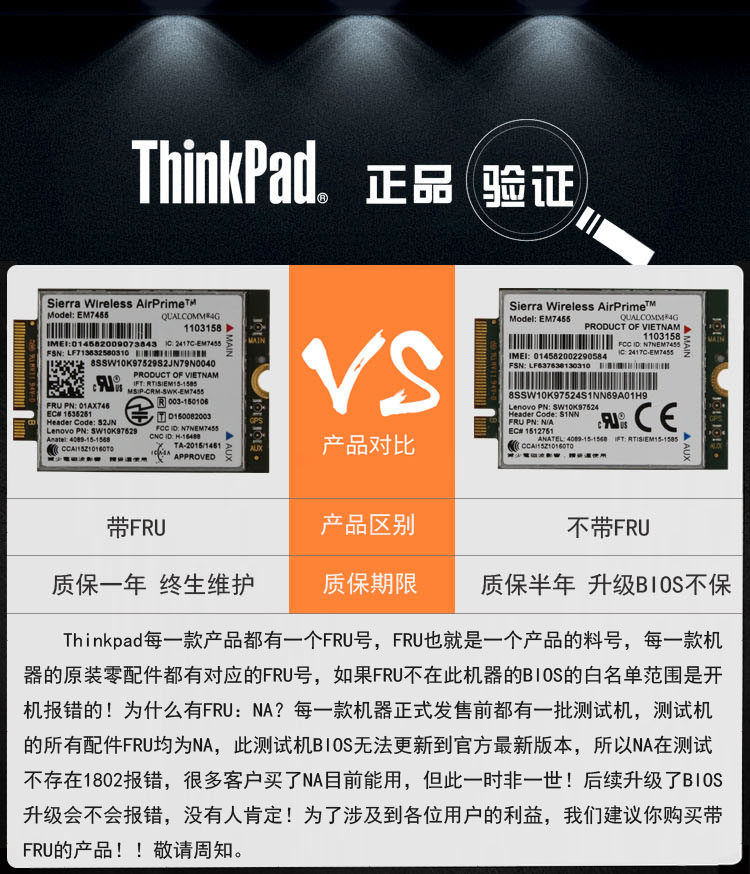 Thinkpad GOBI6000 EM7455 X1 X260 270 4G Internet module 01AX746