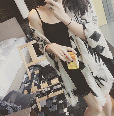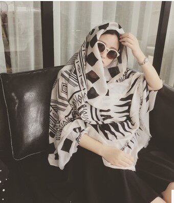 Yarn Towel Black White Super 100 Hitch Decoration Cotton Scarves Shawl Silk Scarves Women Summer Thin Seaside Beach Towels Sunscreen