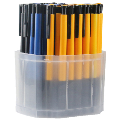 40 blue pens, 40 black pens, 40 red pens, press the round refill, 100 pens in blue, 2 pens in the press, 100 pens in black, 2 by pressing the ball