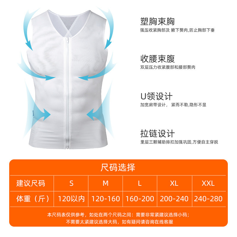 INSMANX Men's Body Shapewear ZipperEd Corset Chest Corset Waist Shaping Vest Tight Slimming Underwear