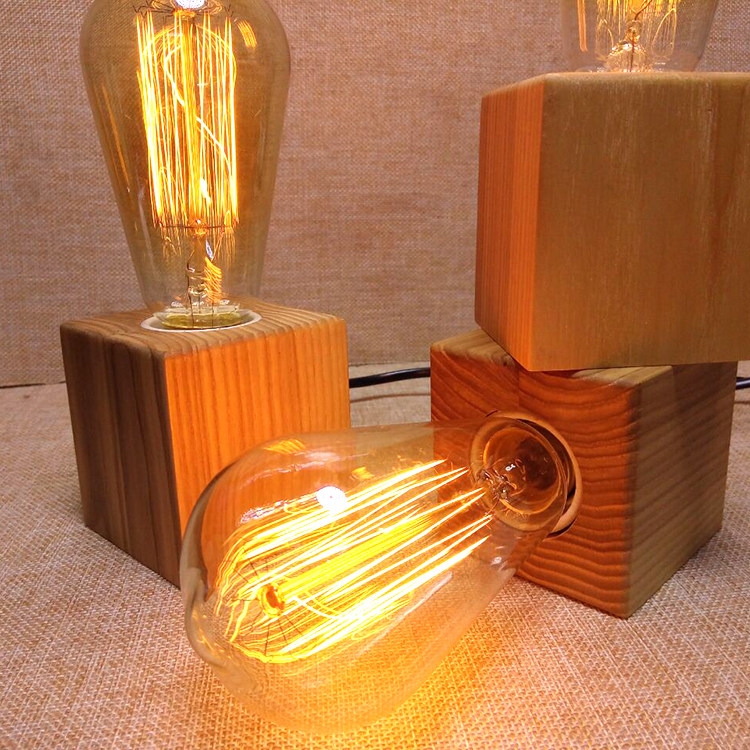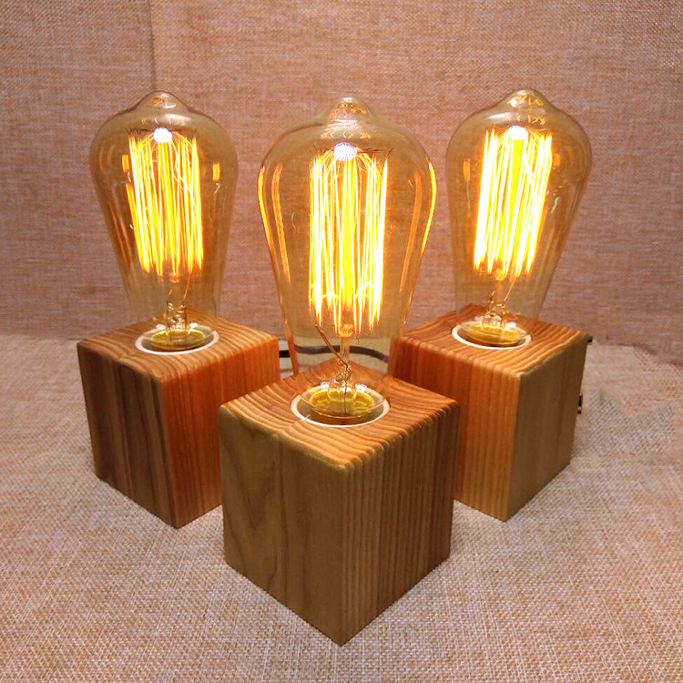 Nursing log solid wood desk bedroom bedside square small table lamp simple lamp base base lamp accessories