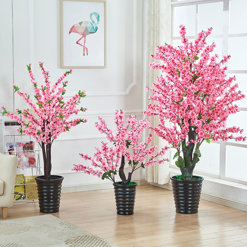 Fake peach blossom simulation plant floor-to-ceiling potted peach tree big bonsai plastic decoration indoor flower living room decoration green tree planting