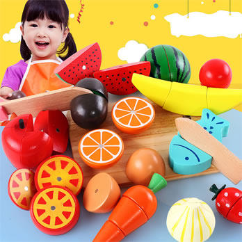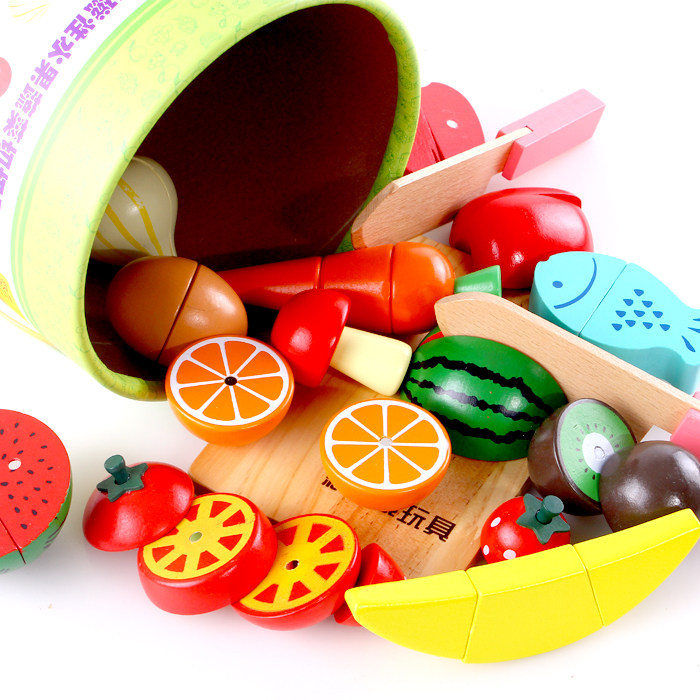 Magnetic cutting fruit toy Children's vegetable cutting music Baby boy girl dress up wine Wooden cutting set