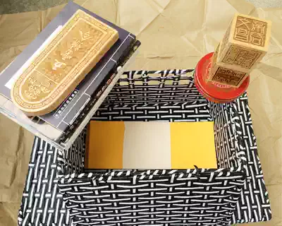 Taoist ancient rhyme Taoist supplies Character package Finishing box Sutra book rack Storage box Paper rattan square Portable