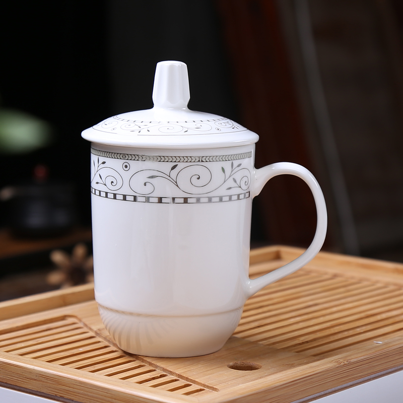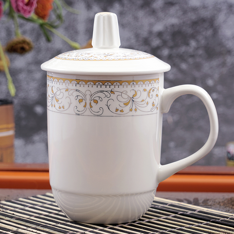 Jingdezhen Ceramic Conference Cup with lid tea cup suit Bone Porcelain Office Conference Cup Hotel Home Water Cup Custom
