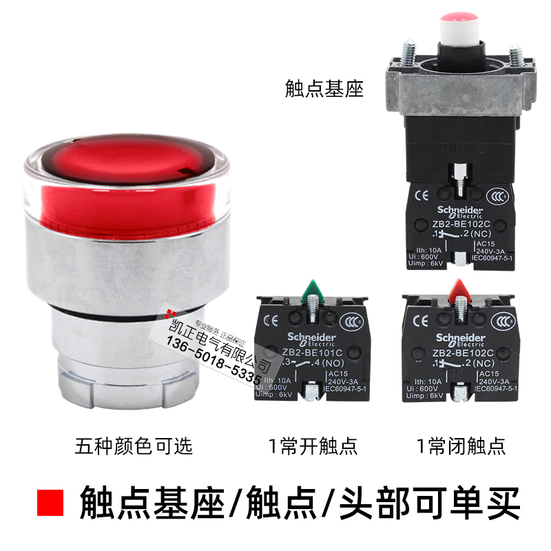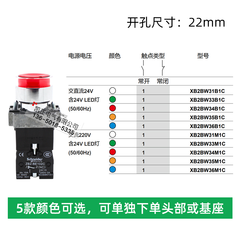 Schneider lighted button switch 22mm LED XB2BW34M2C self-reset 220V 1 normally closed red