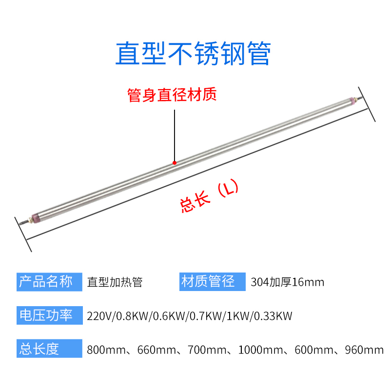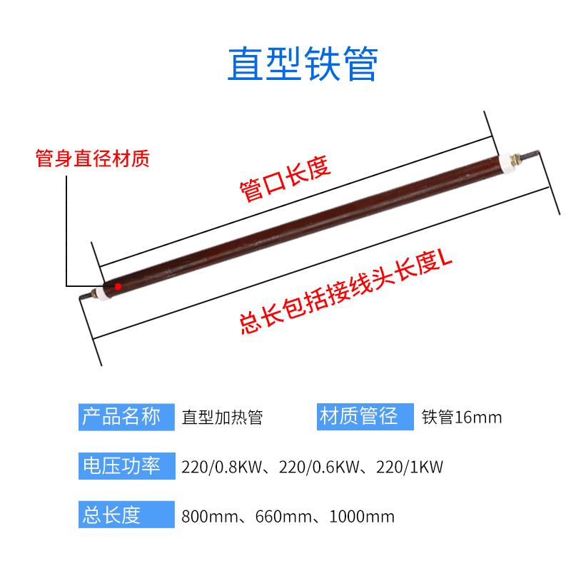 Iron pipe 16mm total length 800mm220V800W iron pipe 16mm total length 660mm220V600W iron pipe 16mm total length 1000mm220V