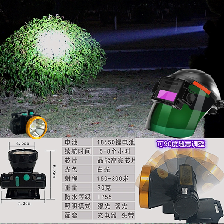 Head-mounted solar automatic light-changing argon-arc welding electrowelded welding protective mask electric welding cap exchangeable battery new product