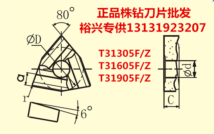 Zhuzhou diamond brand triangle machine chuck head T31305F T31605F T31905F alloy blade