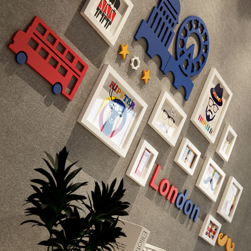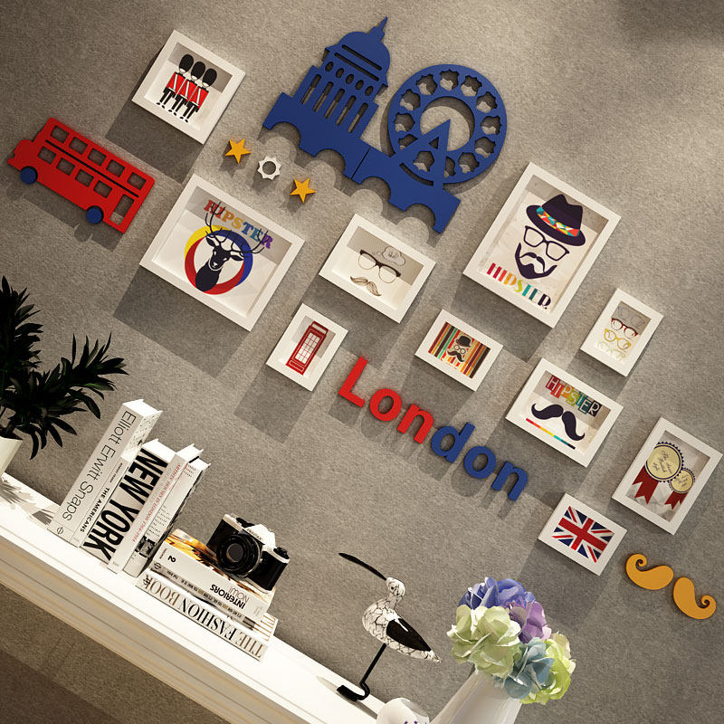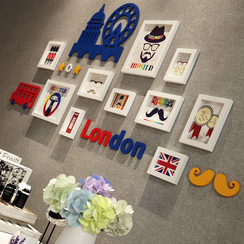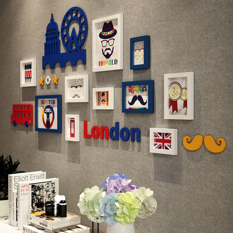 Solid wood British style photo wall Creative photo frame combination Wall decoration wall decoration photo frame wall 2182