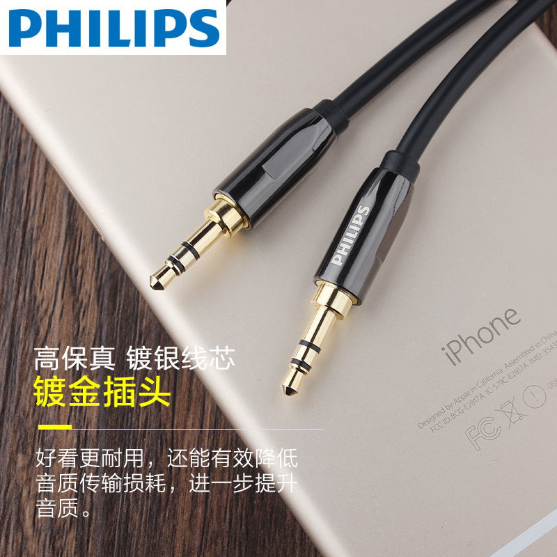 Philips aux audio cable car 3 5mm male-to-bus car computer audio head-mounted two-headed headphone universal plug Apple audio output cable mobile phone car audio cable