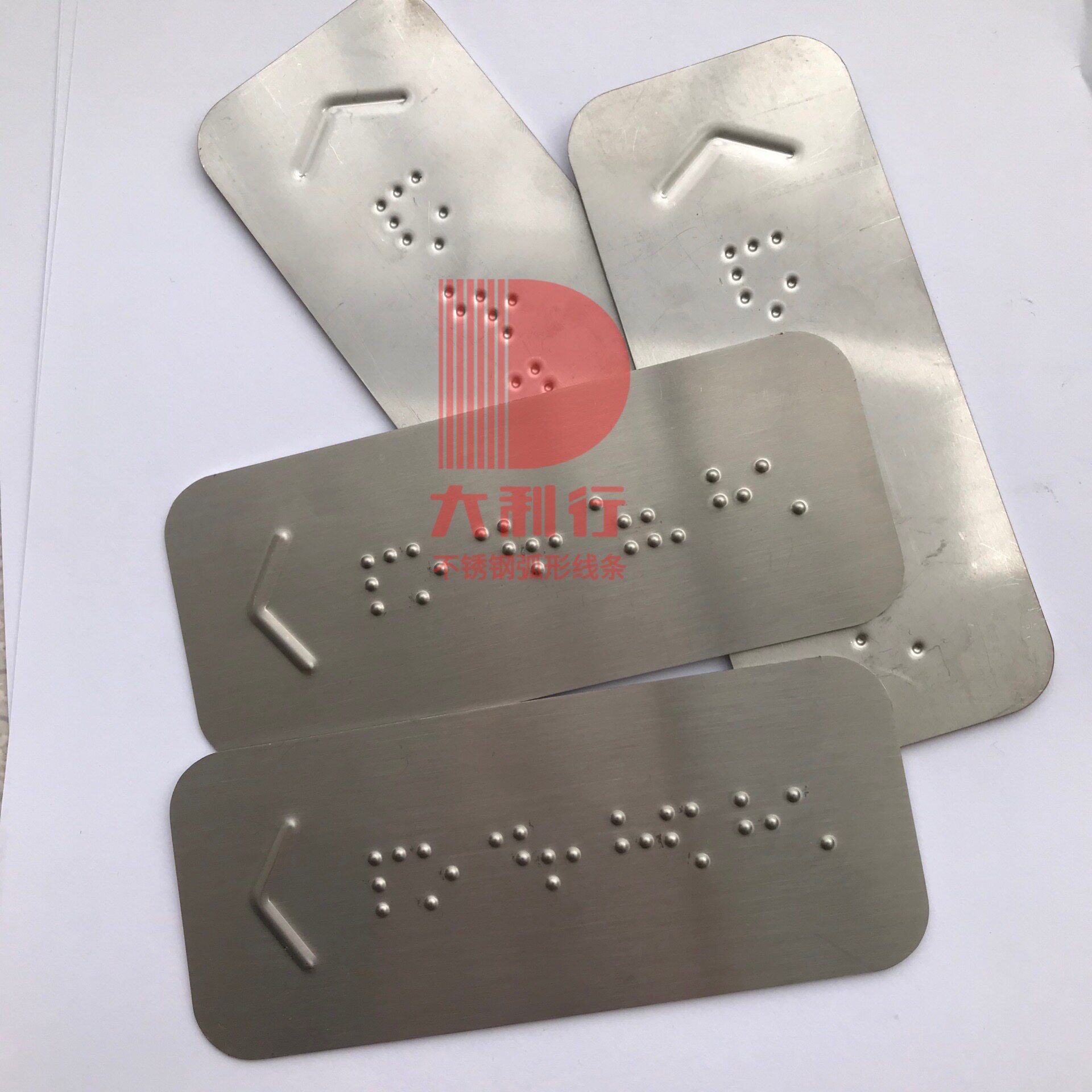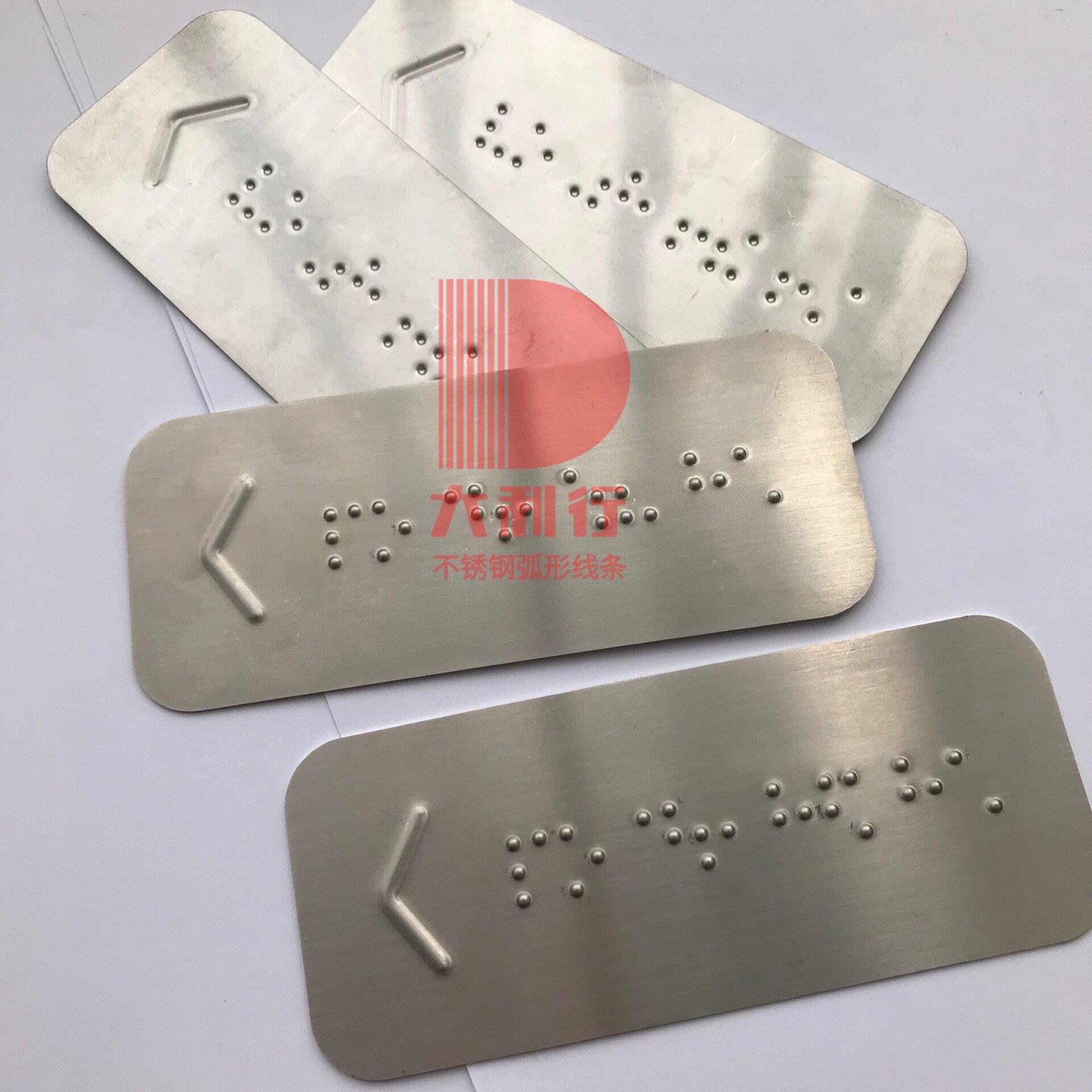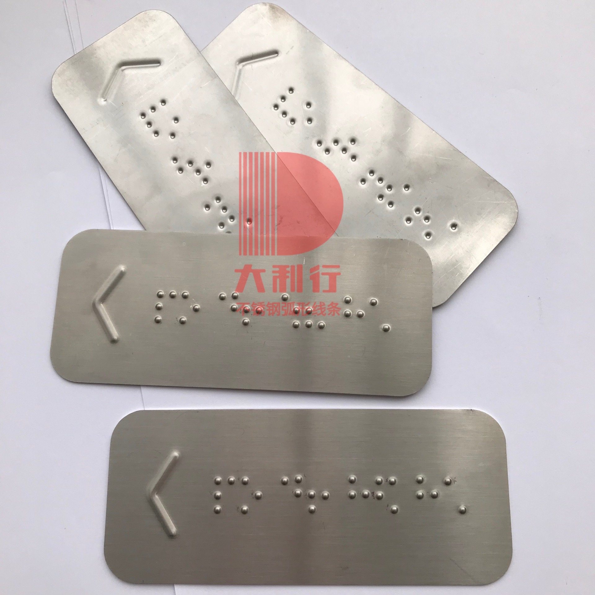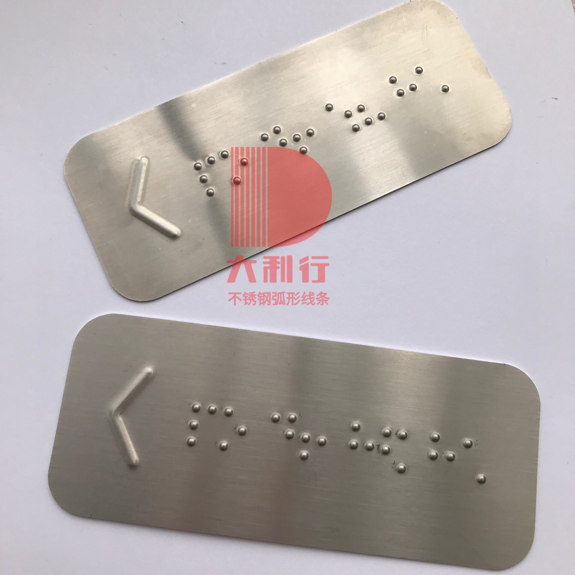 Customized stainless steel braille patch subway handrail arc blind pointing sign with arrow ramp up and down