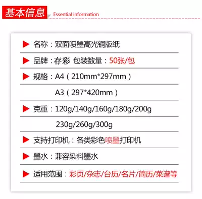 Color A4120g140g160g200g 260g 300g inkjet double-sided high gloss copper paper printing coated paper