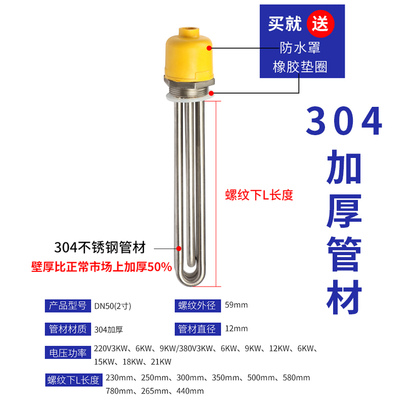 304 Thickened 380V6KW Thread 250mm