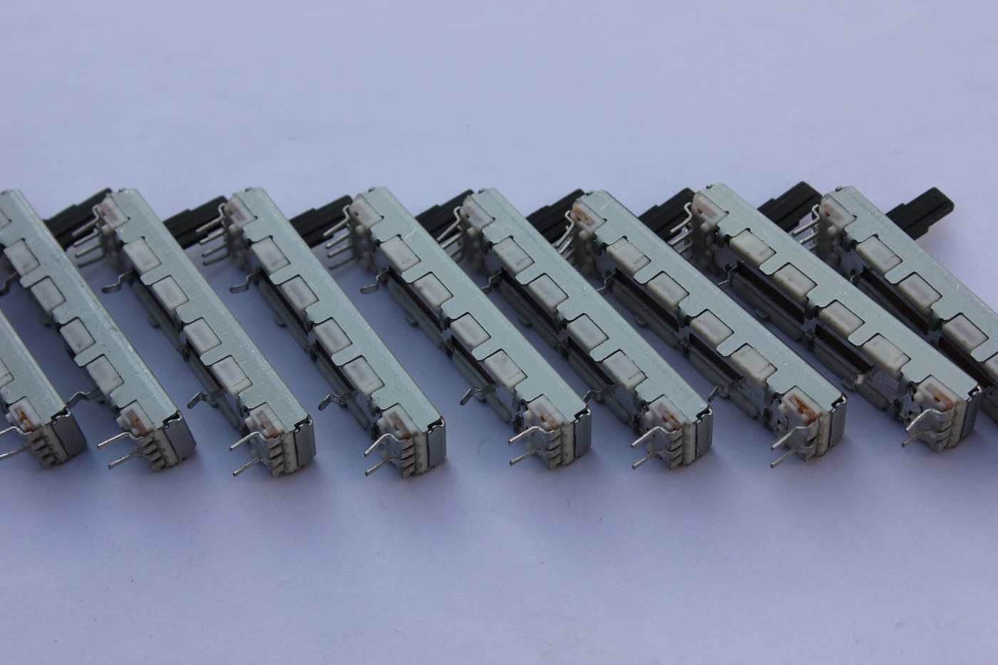 The first on the left is the total volume potentiometers to the left and the second third is the sub-volume potentiometers