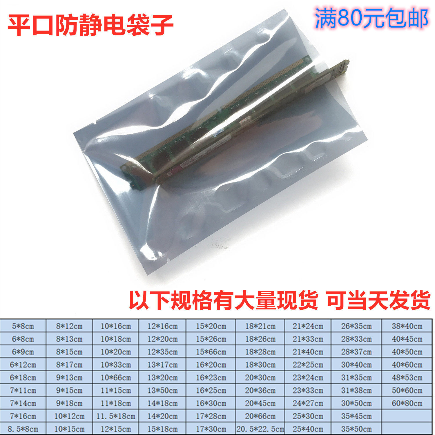 Full anti-static shielding bag Flat mouth electrostatic bag 150*200 motherboard bag LED module packaging bag can be customized