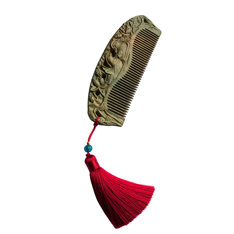 Green sandalwood comb Sandalwood comb female anti-hair loss ancient style Birthday Tanabata Festival gift to girlfriend lettering lady