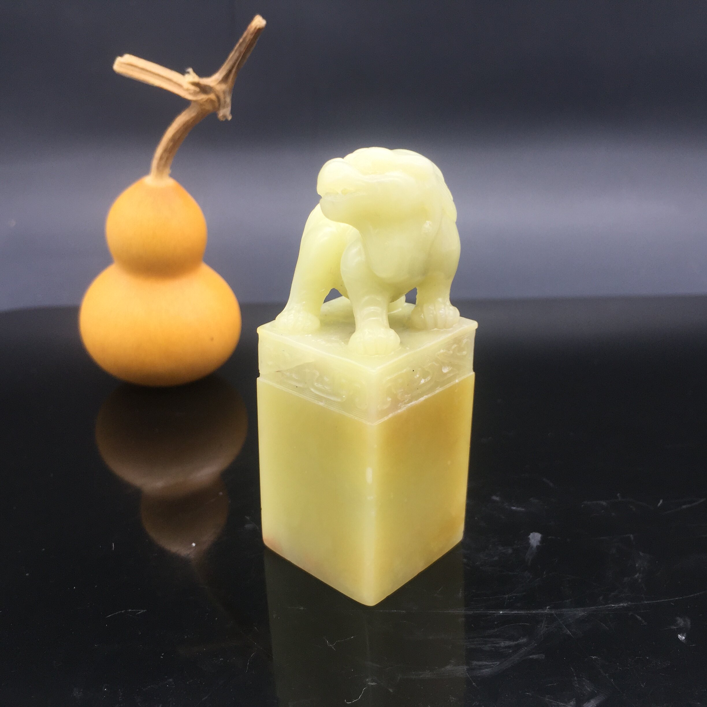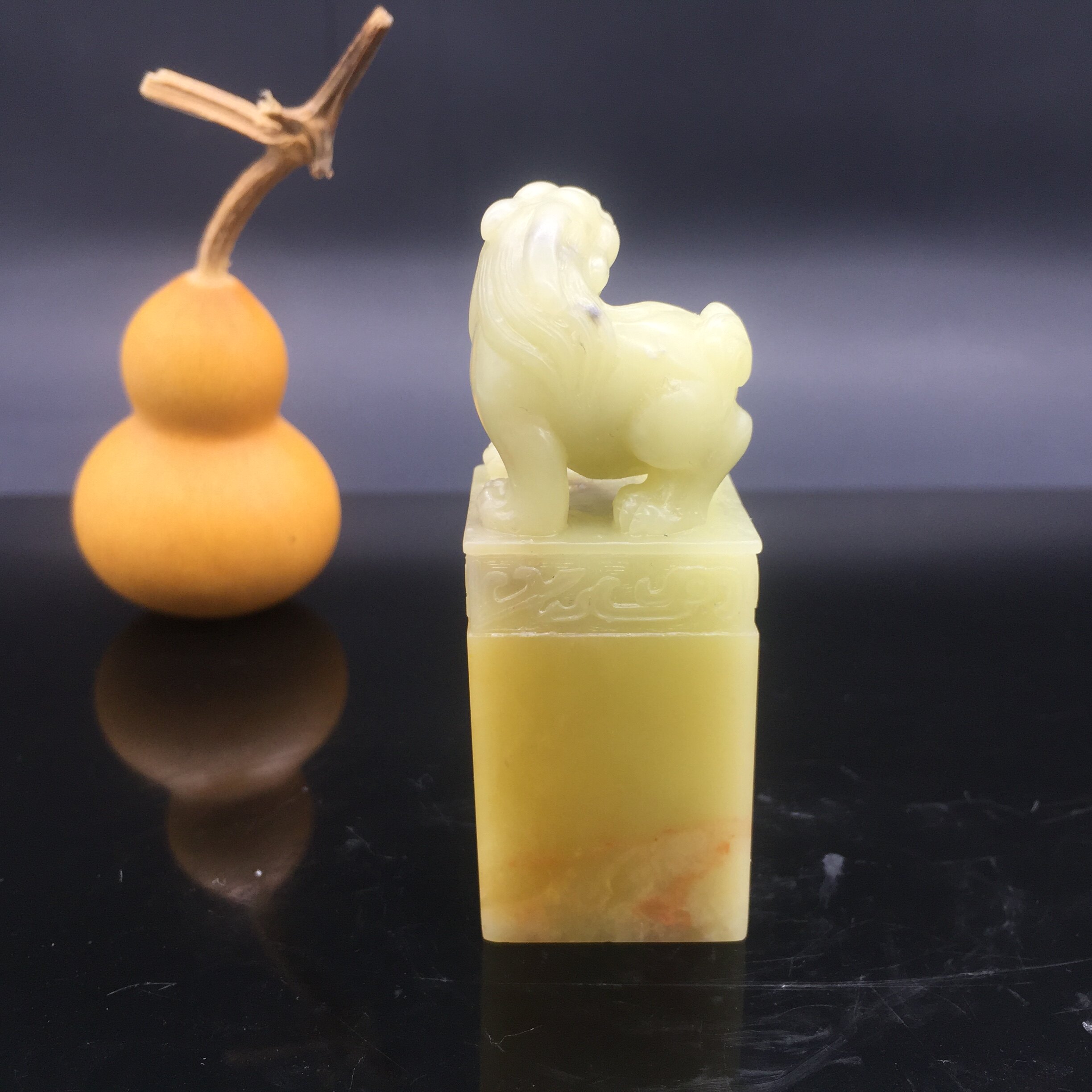 Qingtian stone Sealed door cauliflower yellow Ancient beast button Gold and stone seal carving Calligraphy and painting free seal Seal stone