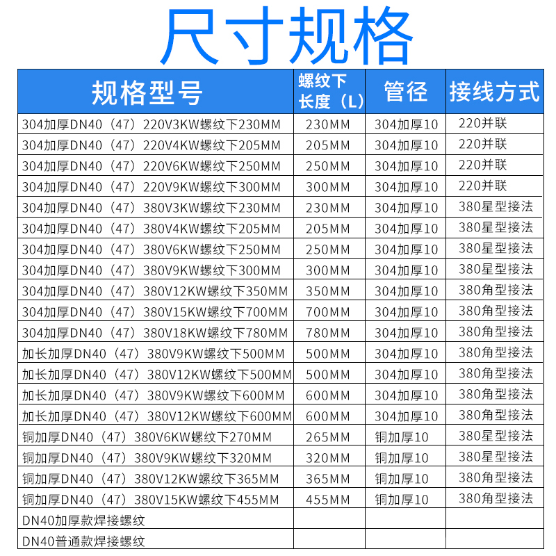 304 Thickening 220v3kw Thread Lower 230mm304 Thickening 220v4kw Thread Lower 205mm304 Thickening 220v6kw Thread 250mm