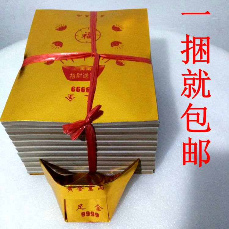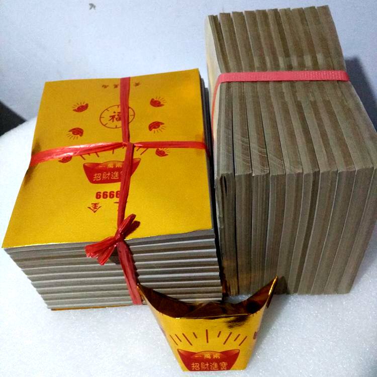 15*19cm gold paper with words, ingot paper, sacrificial burnt paper, coated paper origami yellow, folded in a bundle of 1000 pieces