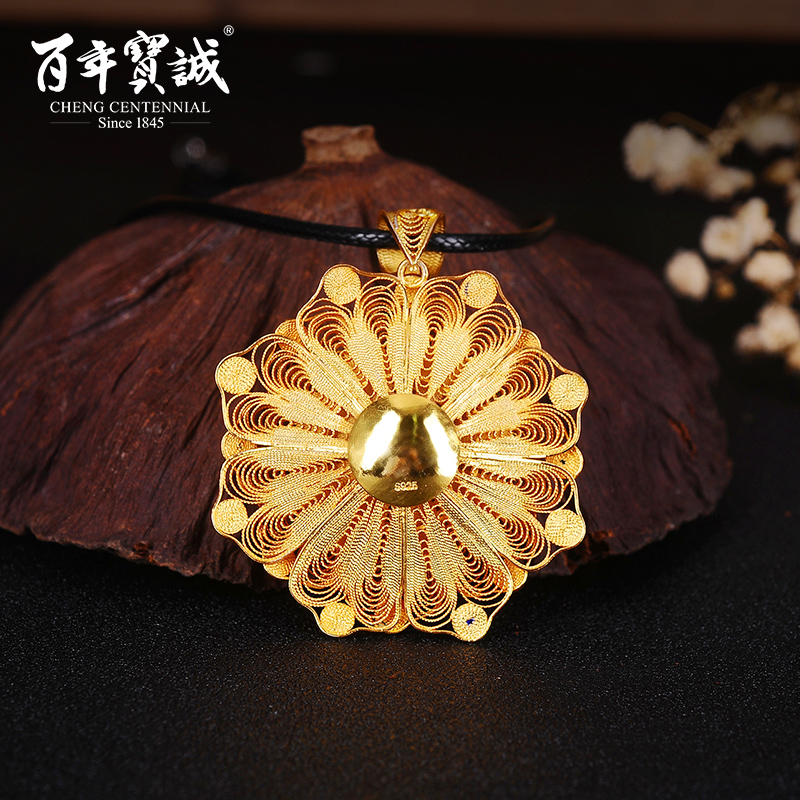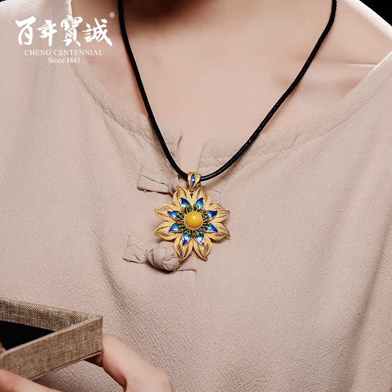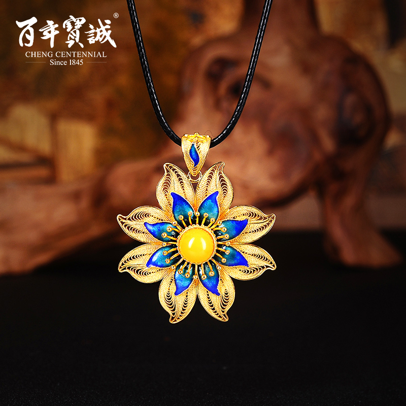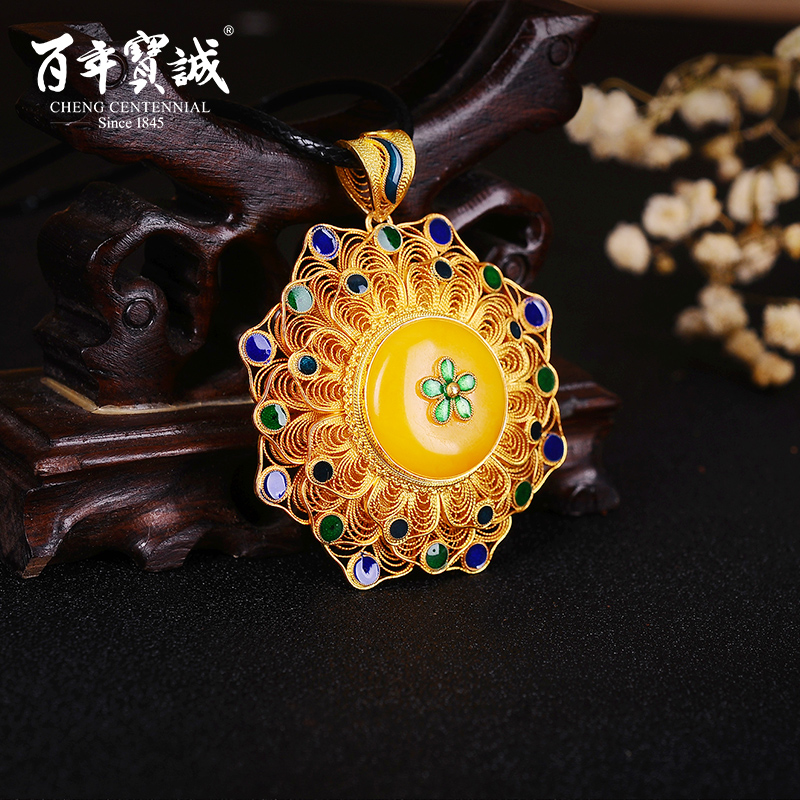 Centennial Baocheng 925 silver necklace ladies handmade filigree filigree inlaid pendant Baltic old beeswax