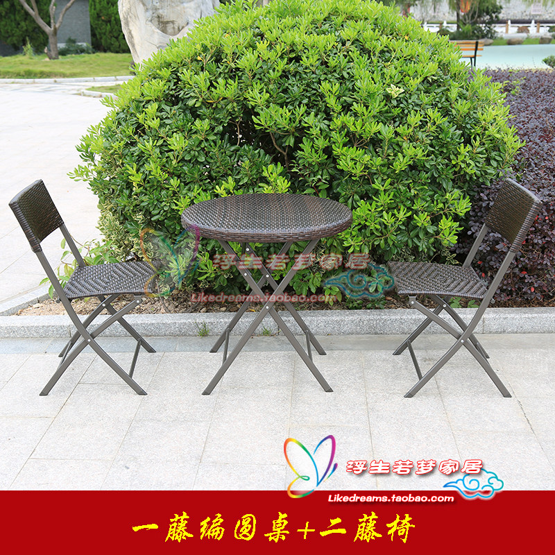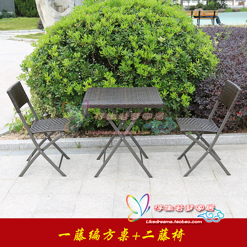 Outdoor folding rattan knitted table and chairs suit balcony breakfast cold drinks Snack Milk Tea Shop Iron Art Square round table and chairs Combined-Taobao