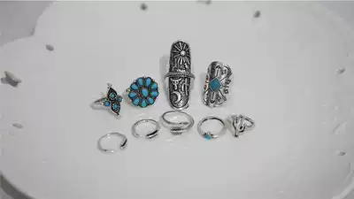 Fashion retro National style European and American exaggerated carved suit joint ring female ring jewelry Tibetan Tibetan ancient