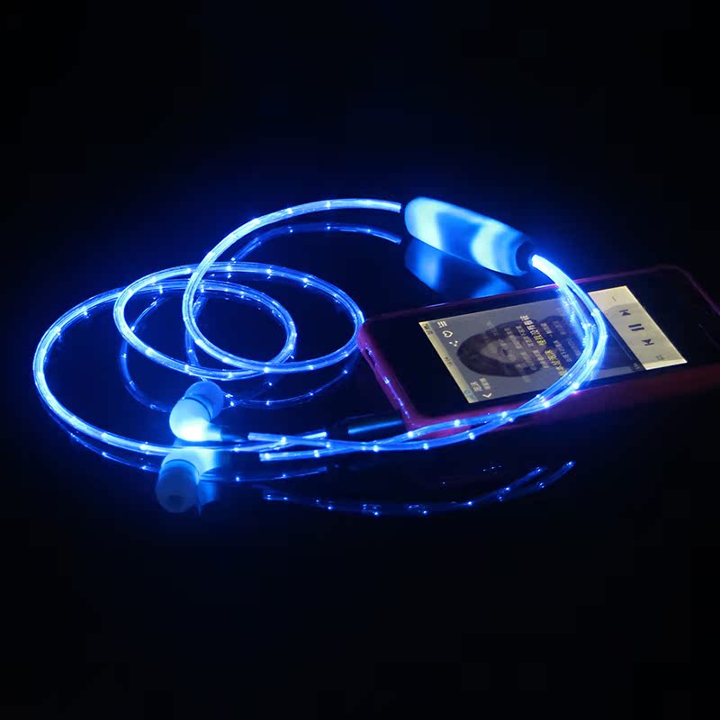 Luminous earphones in-ear luminous flash Android Apple universal mobile phone wire control with wheat personality cold light EL earphones