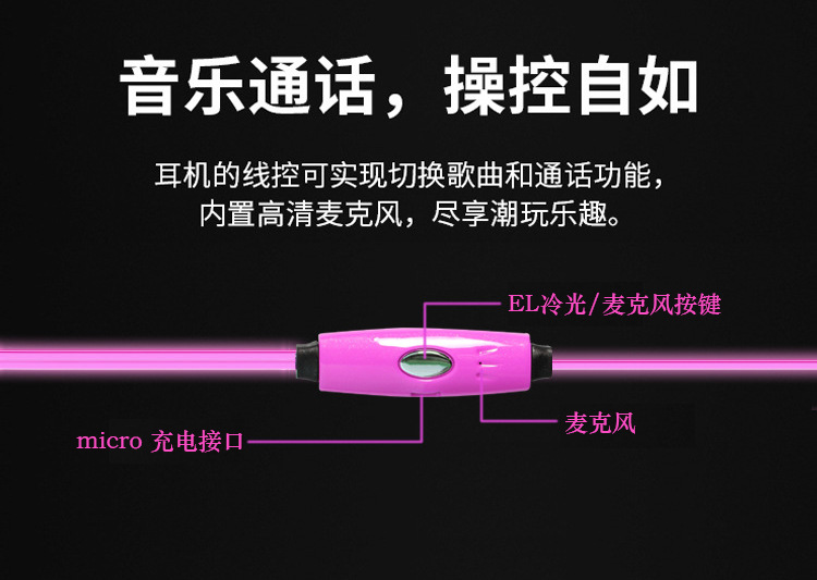 EL cold light flash light earphone