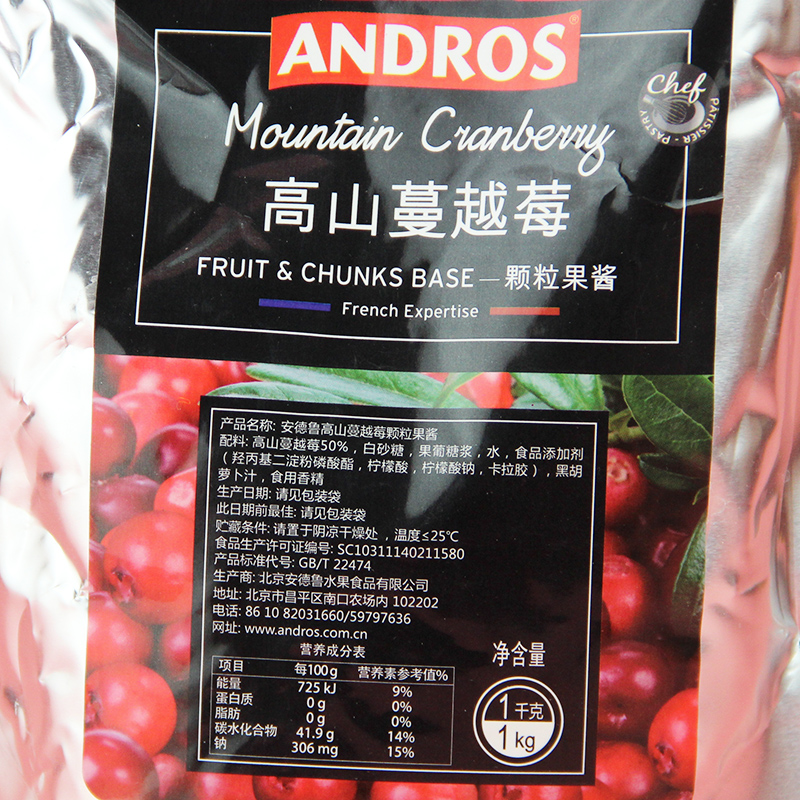 Andros Andrew Alpine Cranberry Granule Jam Filling Strip sauce Fruit Puree Smoothie Drink Sauce 1kg