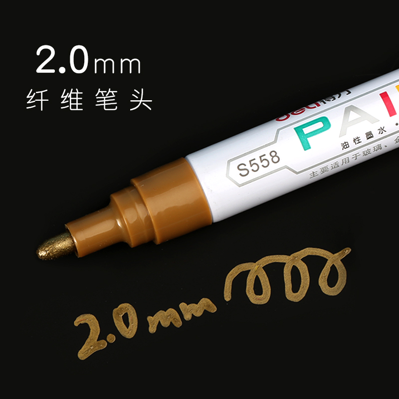 Deli paint pen does not fade tire white graffiti oily mark waterproof gold pen metal black silver furniture tracing gold pen strange pen quick-drying tracing tire modification shoe special diy