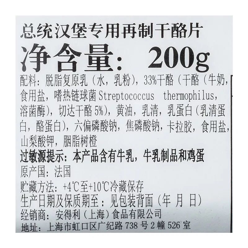 President Burger Cheese Slice 200g Cheesedar Slices Cheddar Imported Car Da Cheese Slice Bread Breakfast Cheese Slice-Taobao