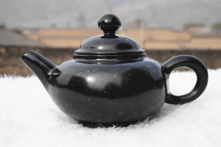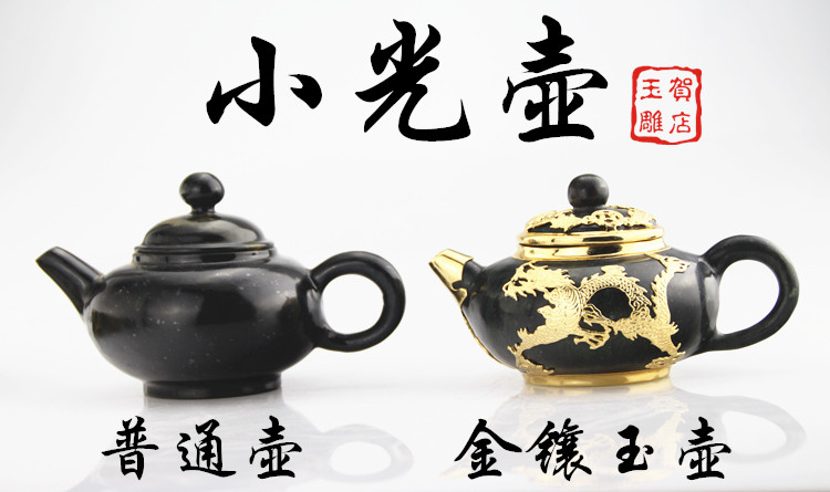 He Dian Jade carved Jiuquan luminous cup Dragon pot Ink Jade Gongfu tea set Jade tea set Lantern pot Small light pot Jiuquan pot