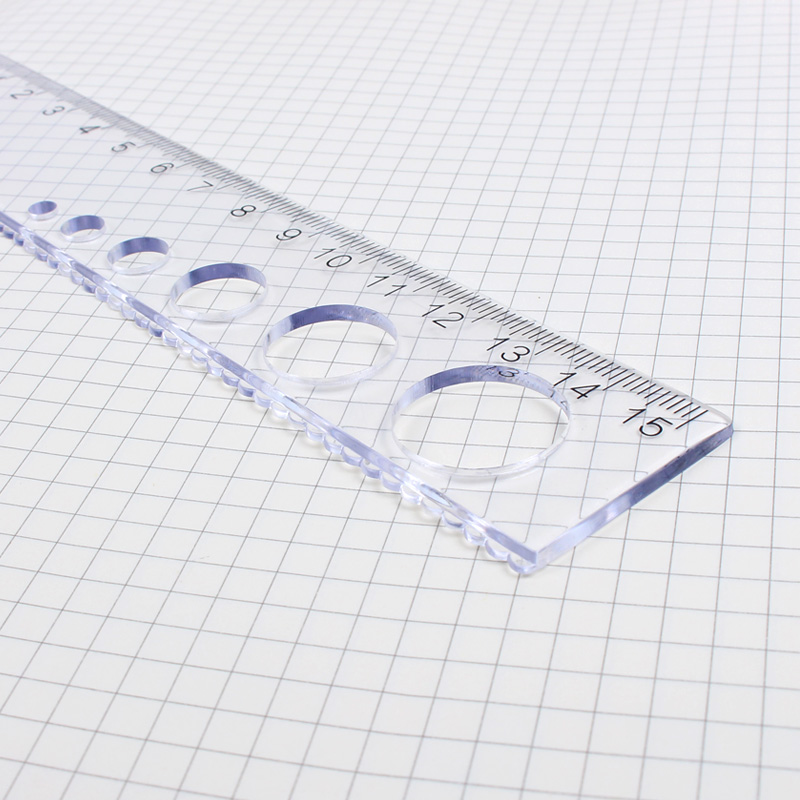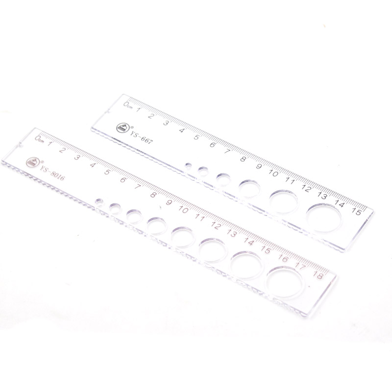 Student mini small short ruler 12cm transparent wave ruler 15cm round hole ruler narrow edge ruler 18cm
