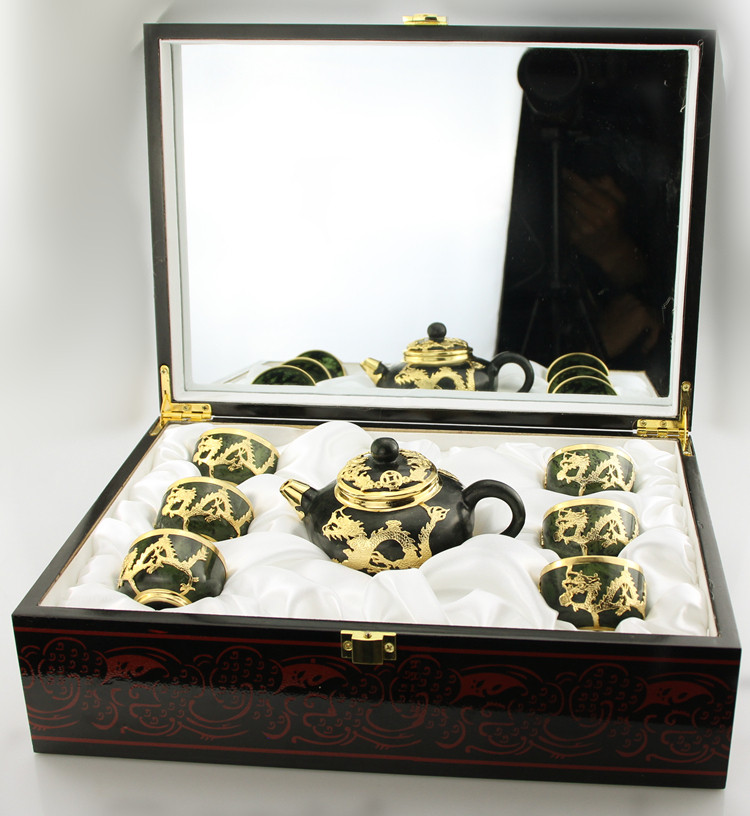 He Dian jade carving Jiuquan luminous cup Gold inlaid jade luminous cup Tea set Wine set Gansu Luminous Cup Shandan Town Yuanyang jade