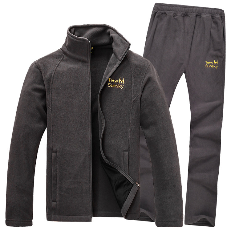 Spring and Autumn Outdoor Sports Leisure Fleece Pants Suit Men Warm Double-sided Fleece Home Suit
