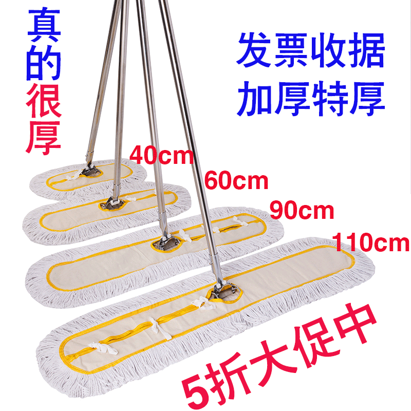 Flat mop large dust mop row drag household cotton mop hotel factory long drag 40 60 90 110cm