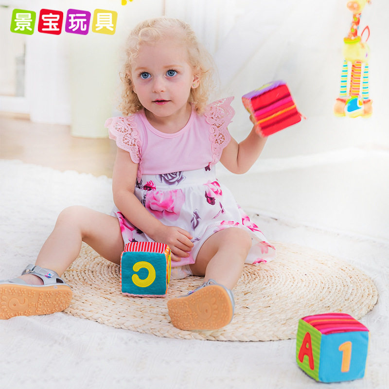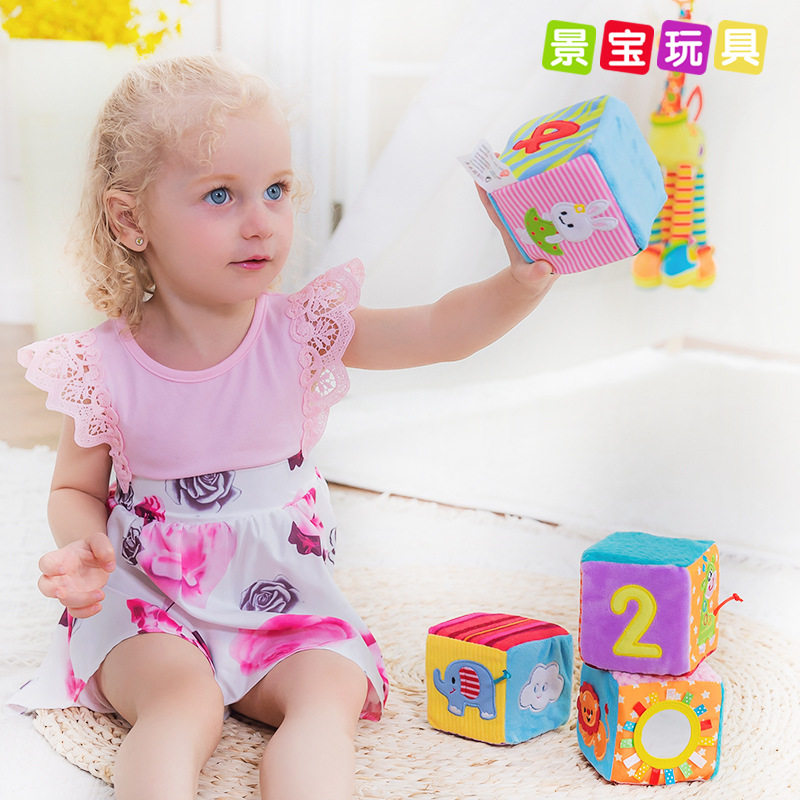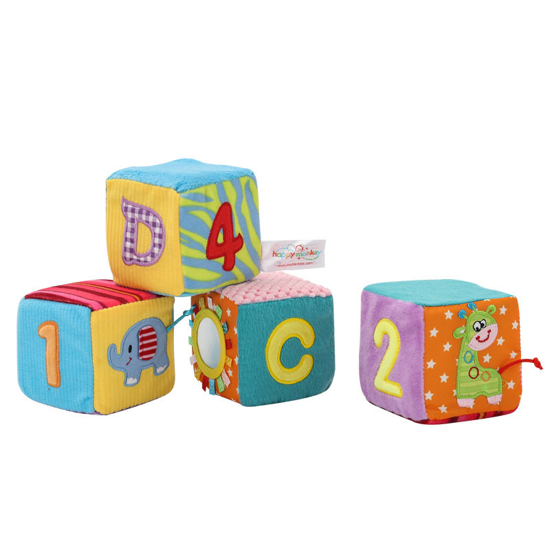 Alphanumeric multifunctional flannel building block ringing paper rattle safety mirror baby safety toy building block cognitive toy