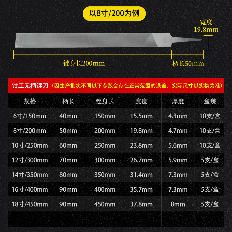 Shanghai working oil light Qi head flat filing knife 6-1 4 inch pliers working fine tooth flat file oil light flat file fine oil light filing