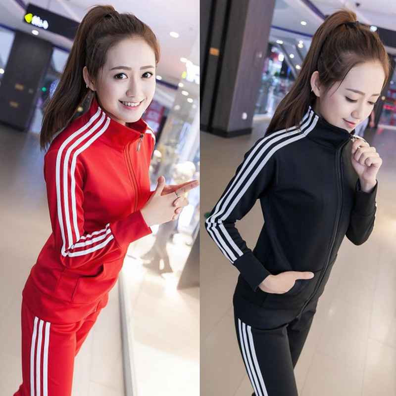 Spring Autumn Season Lean Students Sportswear Casual Women Sashimi Plus Fat Increase Code Long Sleeves Two Sets Sports Suit Women